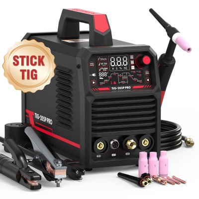 205Amp TIG Welder with Pulse, Large LED Display, 3-in-1 Stick/DC TIG/Pulse TIG, 110/220V Welding Machine, Welding Equipment